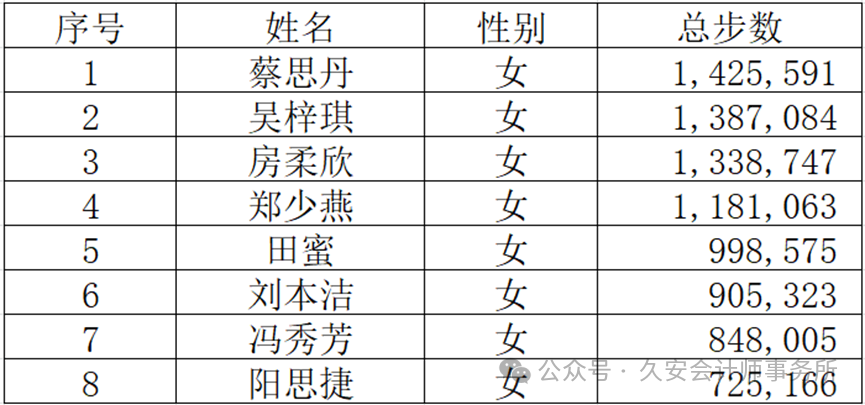 “健步马拉松”获奖名单如下: